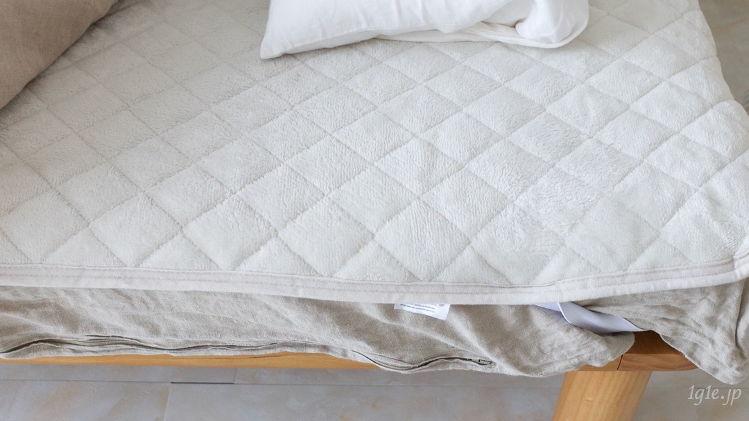 布団カバーや毛布がベージュ・ブラウン系なので、ベージュの敷きパッドを使ってみたこともあるんだけど。