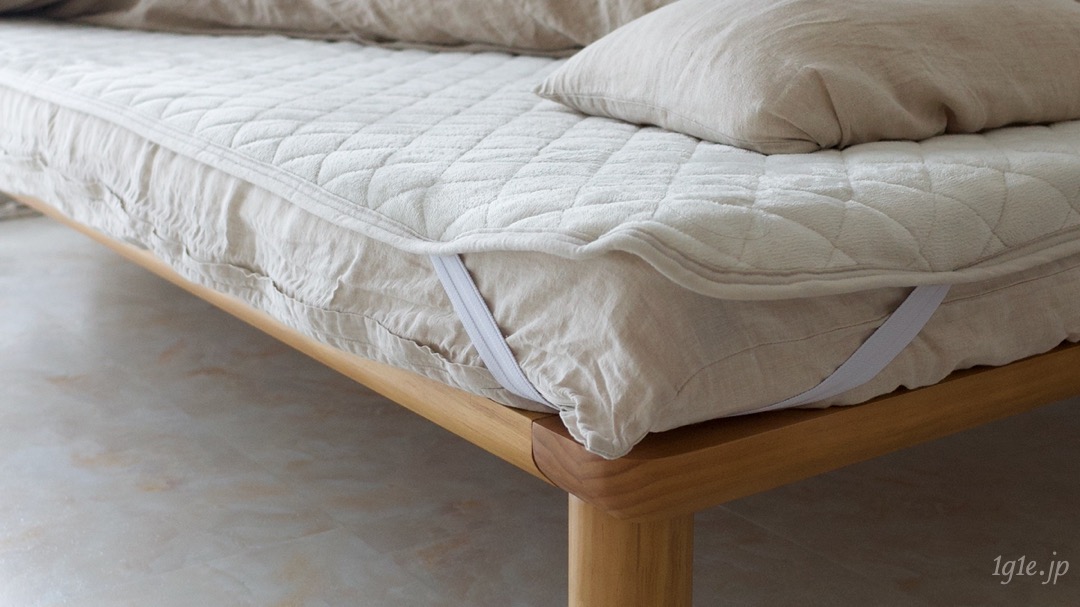 シーツとマットレスの間に敷くベッドパッドは、かなり昔に購入した無印良品のモノを使っています。