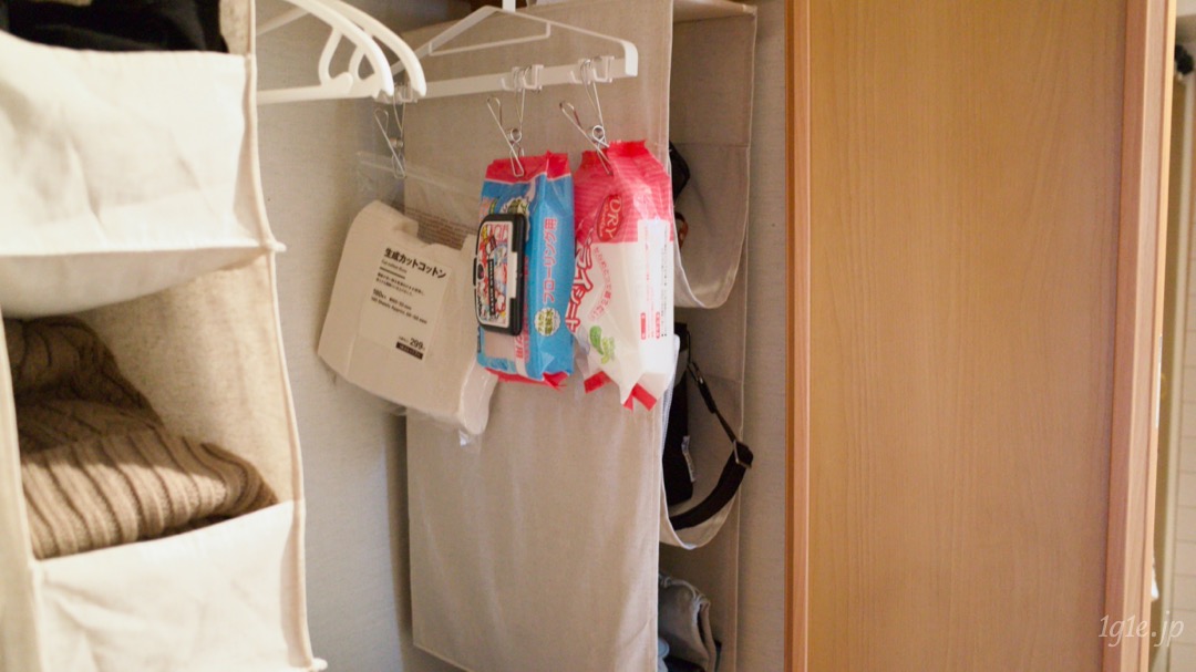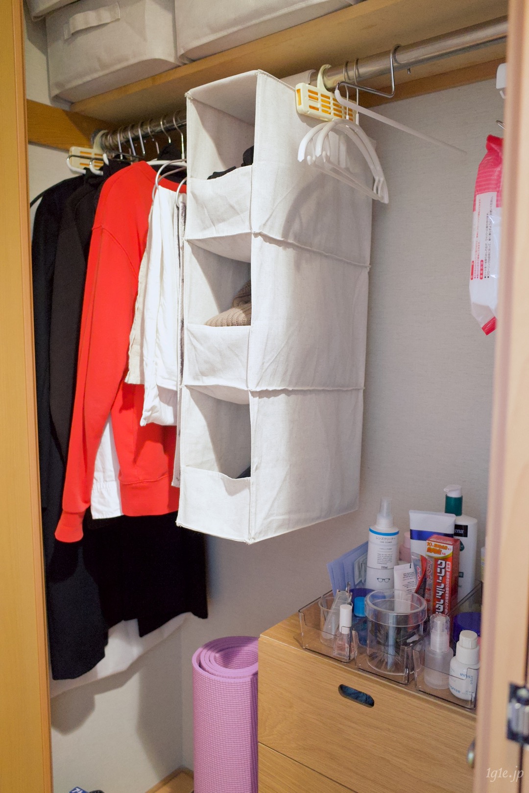 洋服の収納だけでなく、家電や細々したモノも収納せざるをえず、ごちゃごちゃした感じになってます。