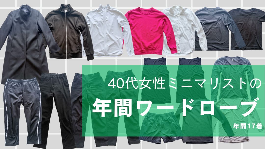詳細は別記事「【40代女性ミニマリスト】年間17着のワードローブ」をご覧ください。
