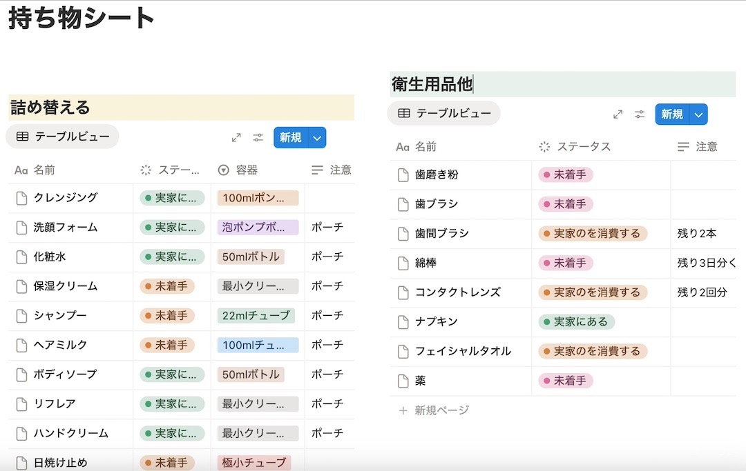 旅行や帰省のたびに「何バッグに入れればいいんだっけ?」「忘れ物ない?」なんて慌てないよう、持ちもの・荷物リストを作成しておきます。