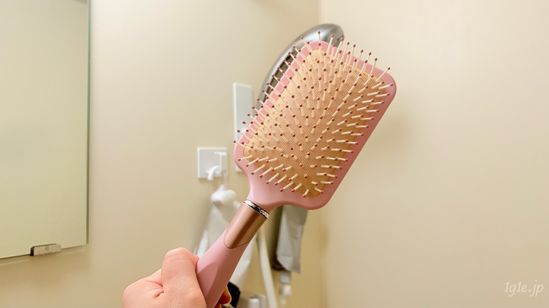 だけど「お手入れがカンタンなブラシがいい!」「髪の毛が絡みにくいのがいい!」ってことで、水洗いできるパドルブラシを使うようになったんですよね。