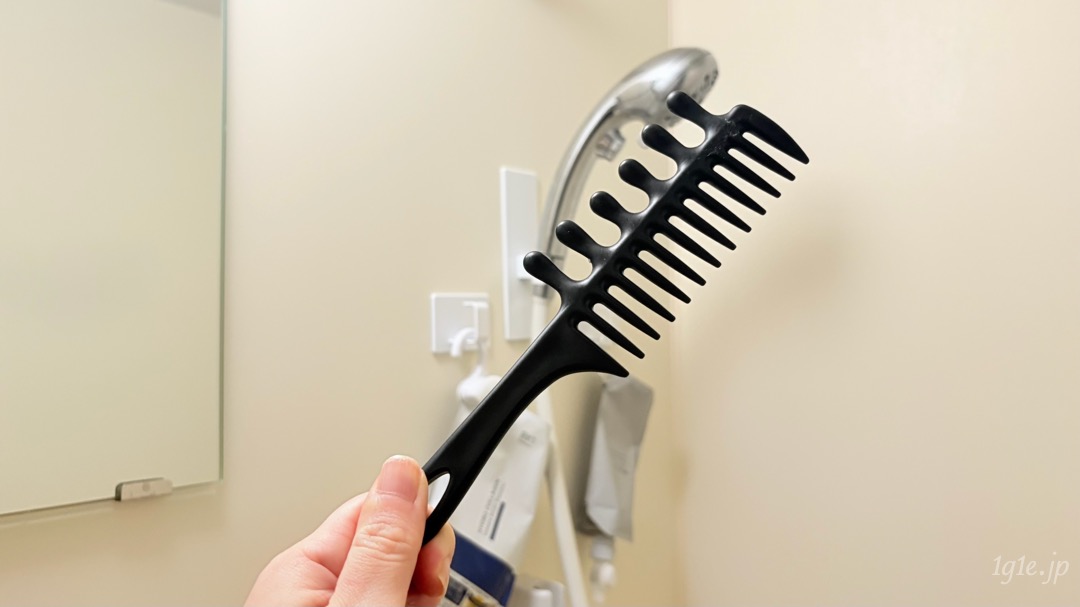 私は洗い流さないトリートメント(アウトバストリートメント)のヘアミルクを使ってるんだけど、髪全体に馴染ませるために大きめのコームを使っています。
