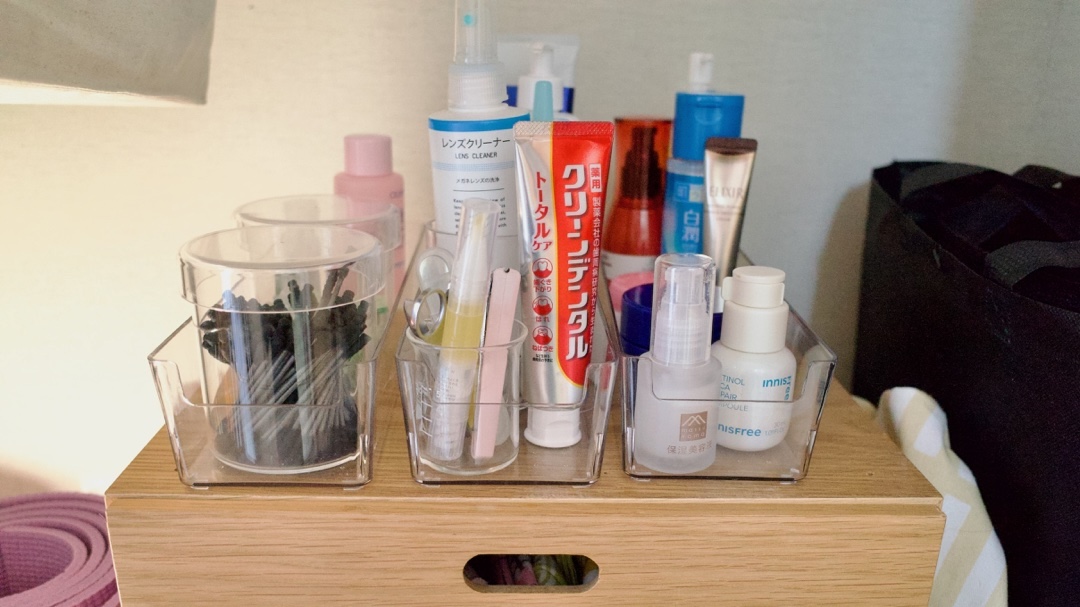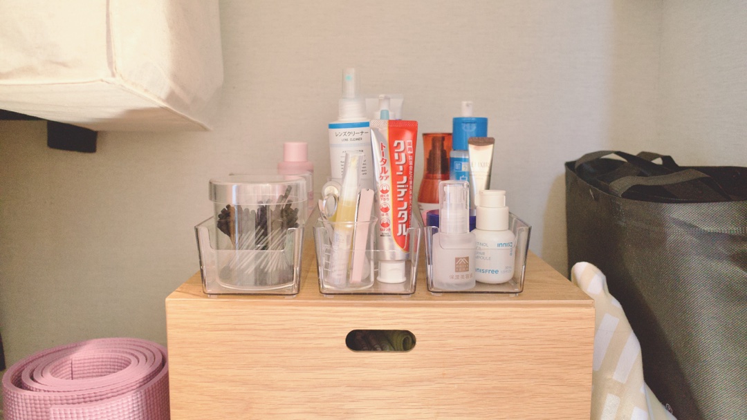 くしなちなみにスキンケア用収納ケースは100均のモノです