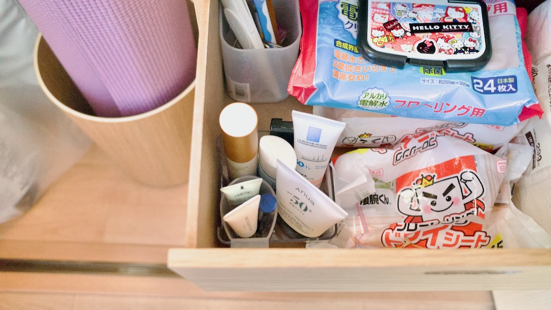 そんな私のコスメの収納場所は、クローゼット内のキャビネットの引き出しの中。