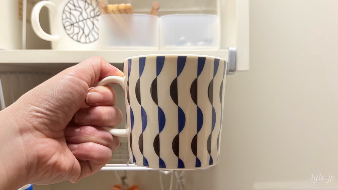 以前は水を飲むときに常用していたんですが、最近はペットボトルの水をそのまま飲んでるため、マグカップの活躍の場がお休みに。