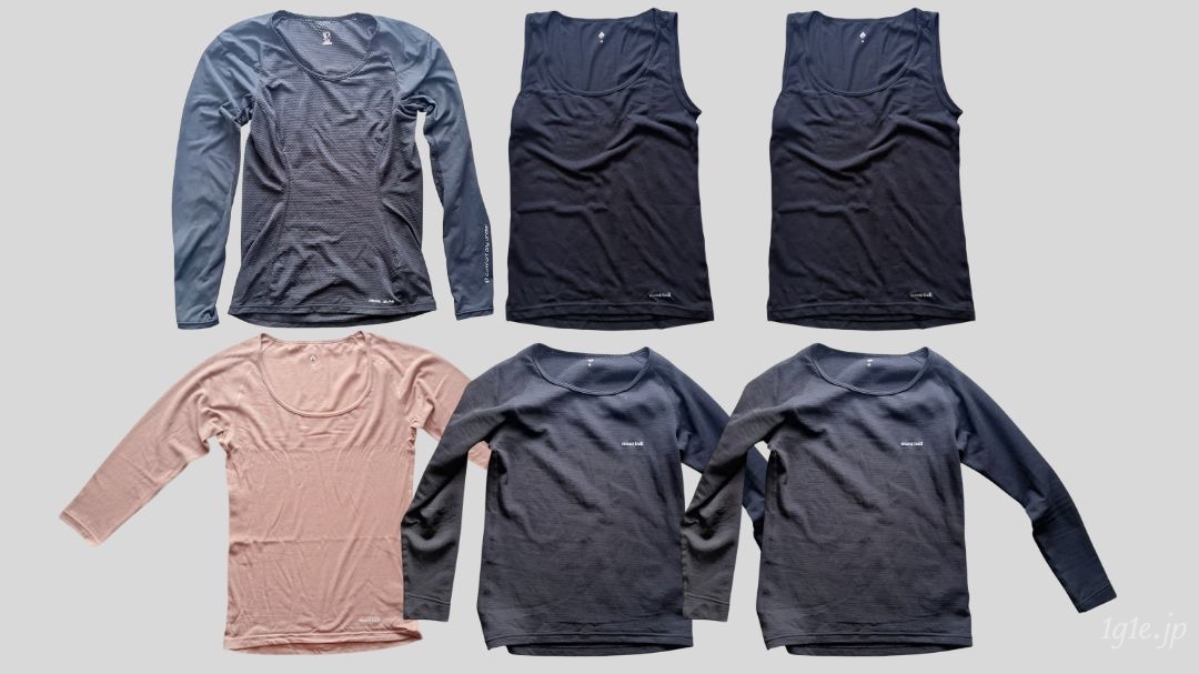 残りはすべてモンベルのジオラインシリーズの生地の厚さを変えたりして愛用しています。