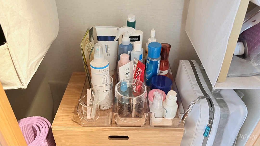 逆にクローゼット内には、いろんなモノが収納されてるものの、スキンケア用品を置く余裕がありました。