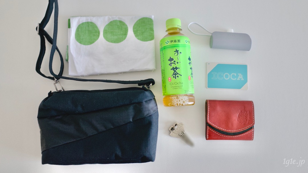 トートバッグなしで出かけるときは、飲料水はこちらのショルダーバッグに入れてます。